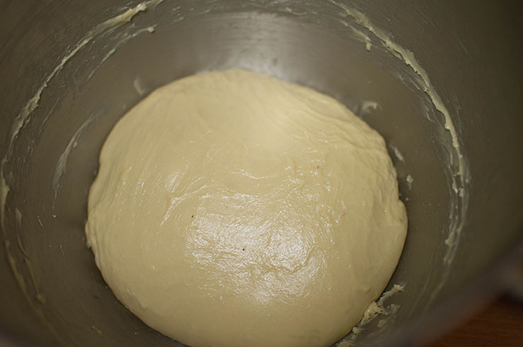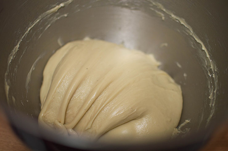 Μετά όμως κάποια λεπτά στο μίξερ η ζύμη μας μοιάζει κάπως έτσι :