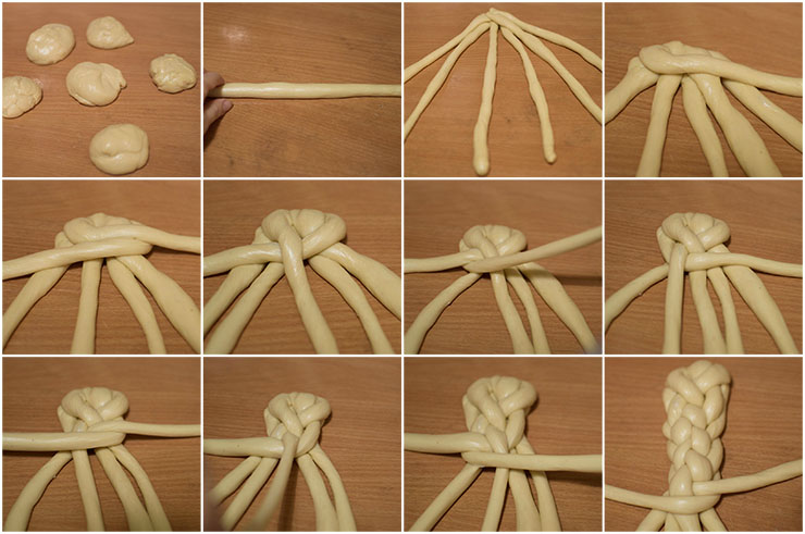 Τώρα, όσον αφορά το πλάσιμο.. αυτό εξαρτάται από εσάς.. εμένα μου αρέσει το τσουρέκι να είναι με 6 κορδονάκια ,σας παραθέτω και τον τρόπο πλεξίματος (φυσικά γίνεται και με 3 -κλασική πλεξούδα- 4,5 ή όσα θέλετε!) :